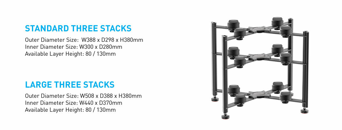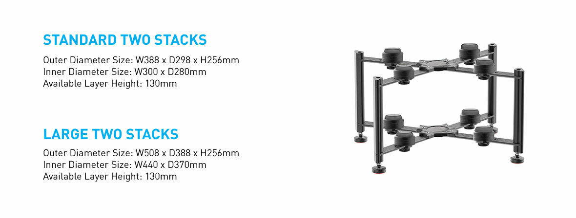 如果您使用耳機放大器或 DAC,您可以查看我們的 AudioBastion 支架是否滿足您的需求。只需確保您的組件的底腳能夠容納在為此目的設計的架子的整個表面上。將大型、中型或小型放大器放置在這些支架之一上將帶來許多好處,無論是在空間還是在組件的空調方面。