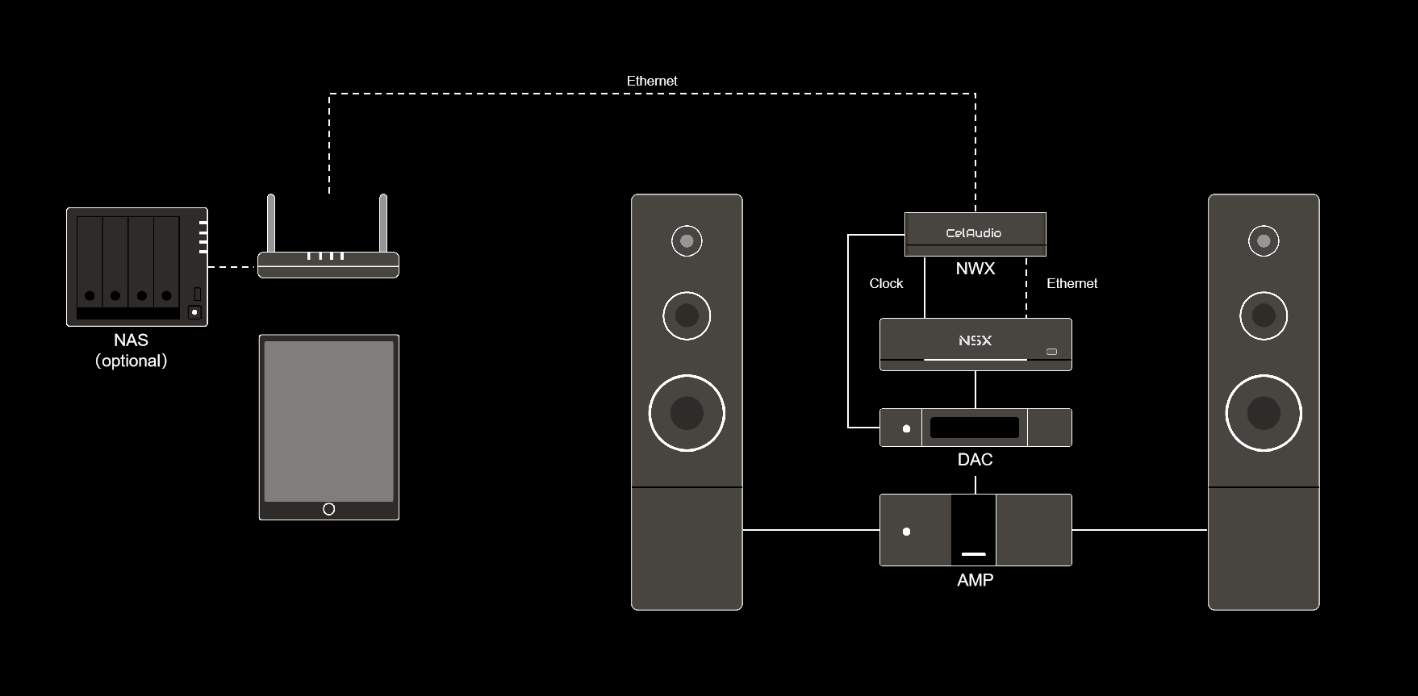 NWX系列HiFi時脈交換器內部時脈模組採用了一顆-120dB@1Hz,8e-13@1s艾倫方差的10MHz OCXO時鐘做為參考時脈。內部交換器時脈源CelCLK II PLL系統單獨採用一顆-85dB@1Hz, 1e-11@1s艾倫方差的50MHz OCXO時脈作為VCO參考時脈。 50MHz VCO時鐘與10MHz參考時脈發揮1+1>2的作用,使得整機無論是在對外供應時脈訊號,或是對內提供交換器工作時脈訊號, 都達到極高的時脈精度。