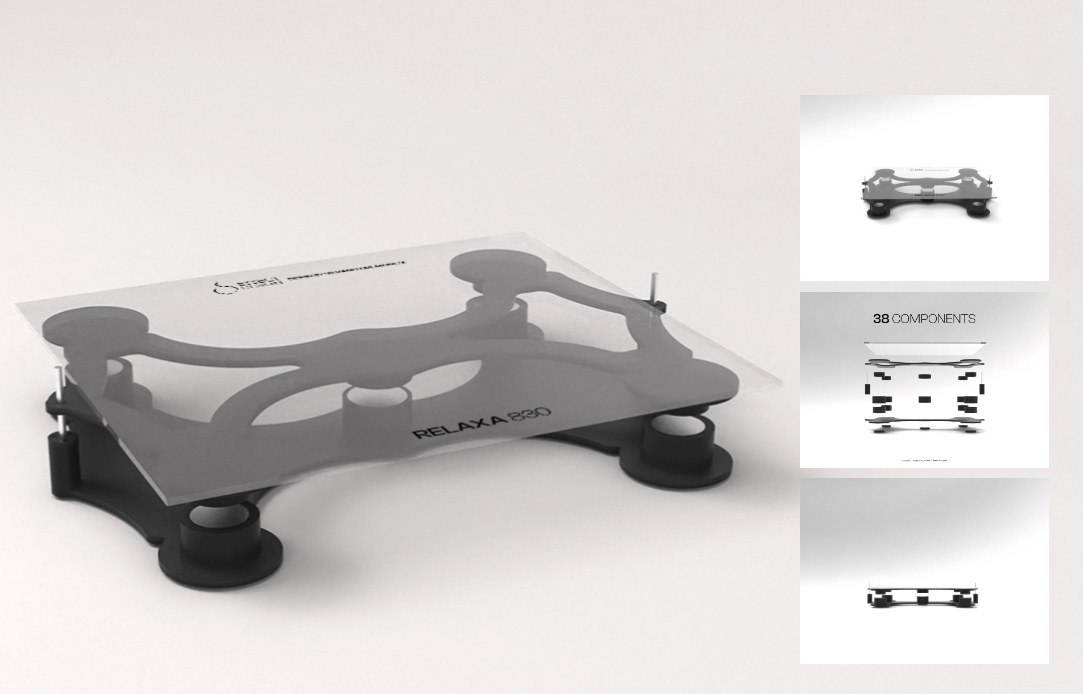 「RELAXA 800系列」透過組裝由強化玻璃、鋼、鋁等不同材料製成的38個零件,實現了高振動控制和剛性。此外,透過採用新的導通材料,提高了浮動精度,並且導銷還可以實現平滑的垂直運動。