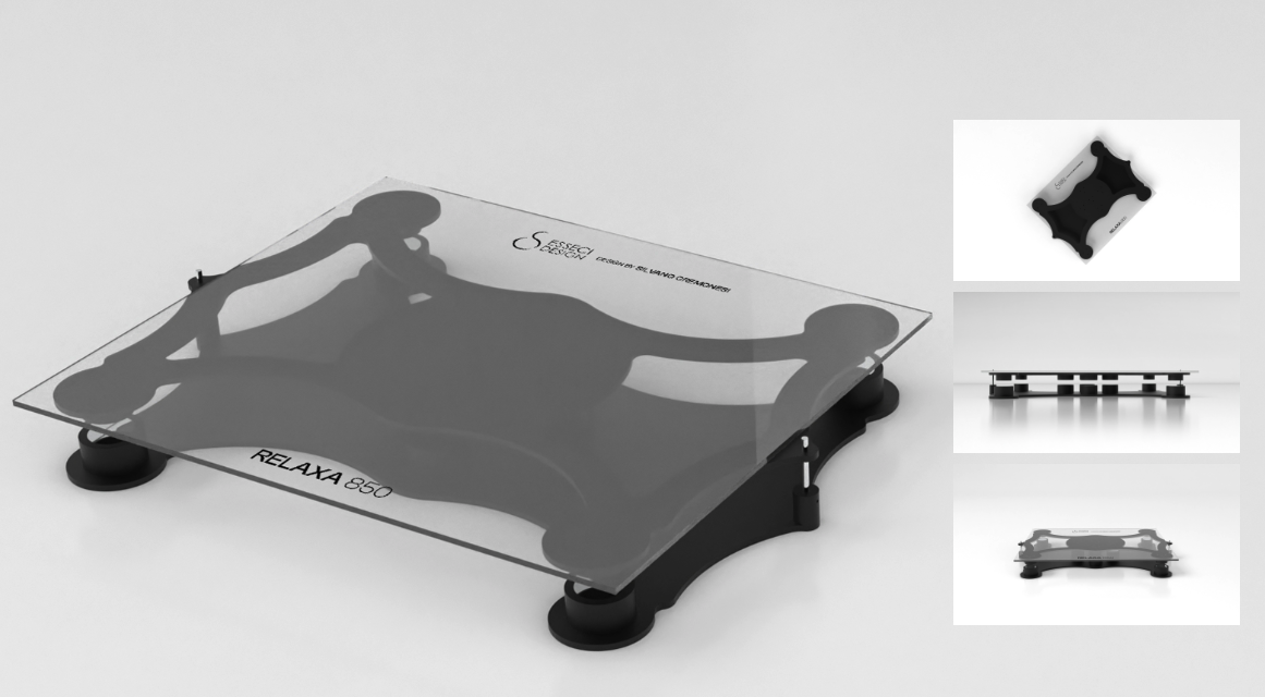 RELAXA 850的外形尺寸為600W x 83H x 460Dmm(主體)/550W x 460Dmm(玻璃板),質量為15.6kg