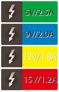 | 輸出: | 5V/2.5A; 9V/2.0A;12V/1.8A;15V/1.2A |
