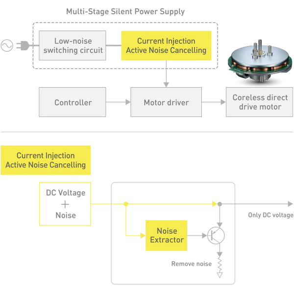 SL-1200GME/SL-1210GME 採用多層靜音電源,整合了低雜訊開關電路和雜訊消除電路。