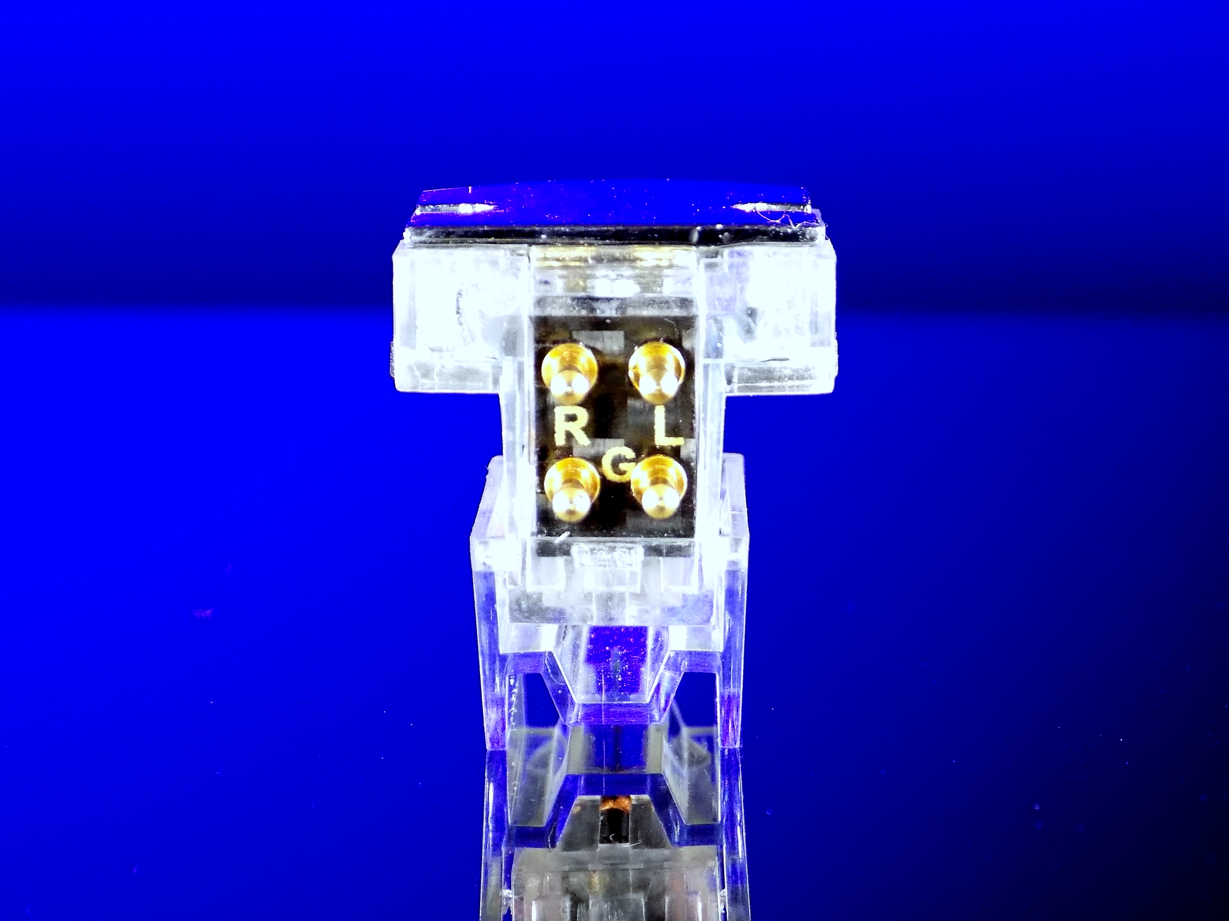 固定在唱頭前端的球形物體用作平衡重物,使唱頭主體的最佳擊打位置和振動系統的重心一致。在檢查材料和反覆音頻監控後,將硬度5.0、比重2.5、直徑8mm、重約1克的非金屬青金石球放置在最合適的位置,以形成最佳的唱頭結構。青金石球除了質心控制之外還有另一個重要優點。由於其成分由幾種球形方鈉石混合而成,從球體北極流出的振動波會被混合在內部的晶體結構吸收,而沿著球體表面向下流動的振動波最終在球體的南極被抵消。
